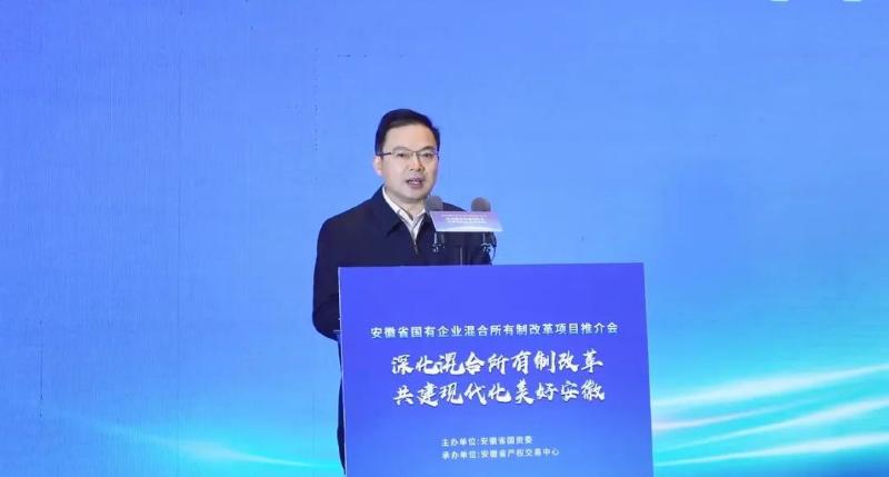 11月29日上午,安徽省国有企业混合所有制改革项目推介会在合肥市成功举办。省政府副省长何树山出席会议,省政府副秘书长汪春明,省发展改革委、省经济和信息化厅、省工商联相关负责人,各省属企业、市国资委、驻皖央企、民营企业、专业投资机构、中介服务机构等相关代表参加会议。省国资委党委书记、主任李中在推介会上致辞。