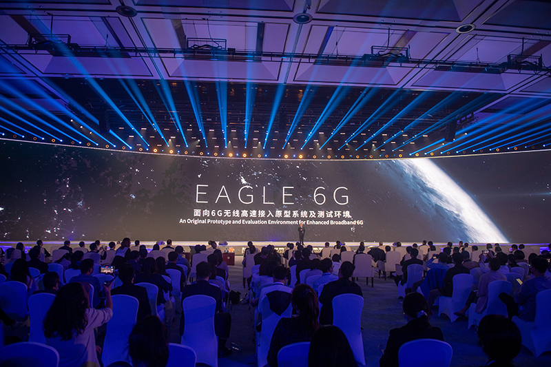 在浙江乌镇举行的2022年世界互联网大会乌镇峰会上拍摄的“EAGLE 6G:面向6G无线高速接入原型系统及测试环境”发布现场(2022年11月9日摄)。新华社记者 江汉 摄