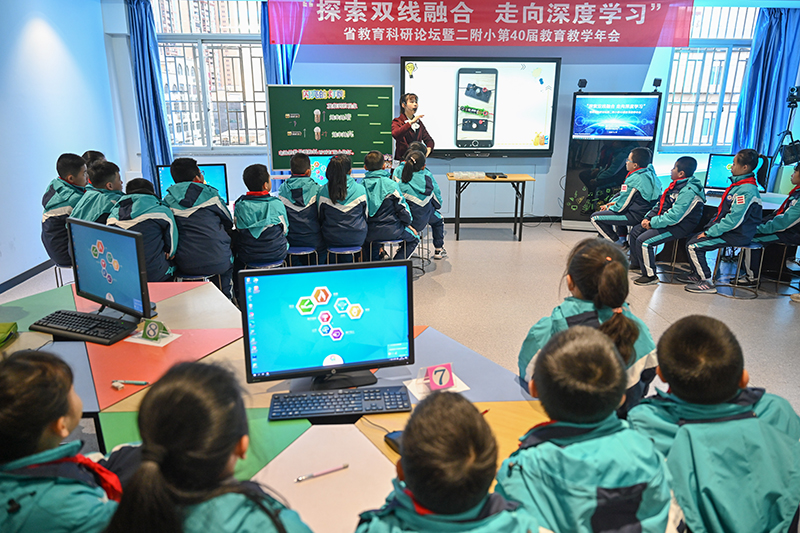 福州教育学院附属第二小学的学生在由学校与网龙网络公司共同打造的“创客教室”学习科学课(2020年12月18日摄)。新华社记者 宋为伟 摄