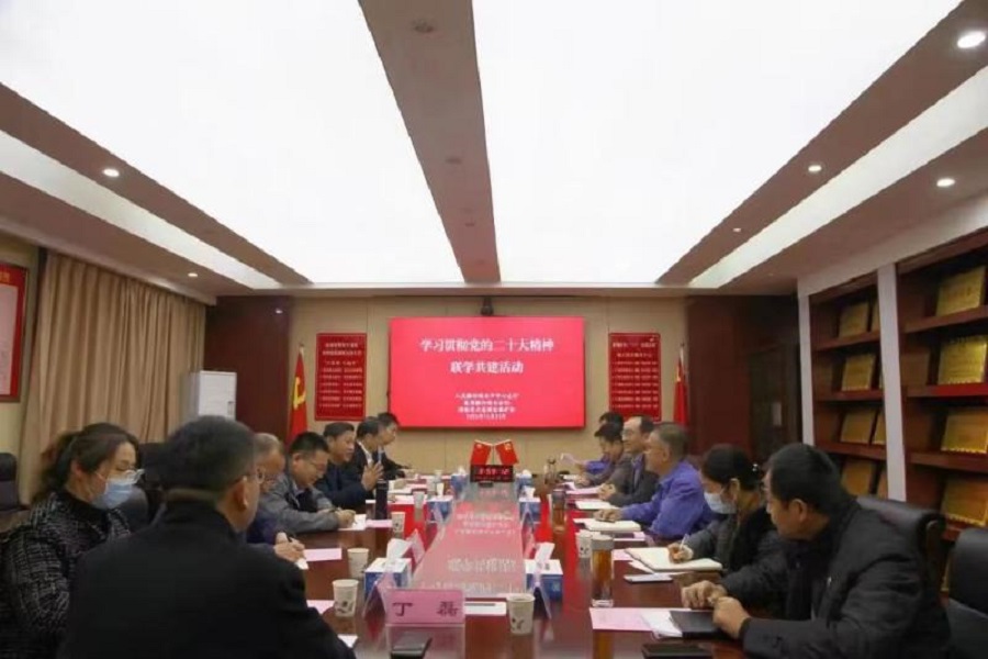 11月23日下午,淮海实业集团子公司安徽矿机与中国人民银行淮北市中心支行、徽商银行淮北分行联合开展“学习贯彻党的二十大精神”联学共建活动,进一步激发基层党组织凝聚力和战斗力,推动党建和业务工作有机融合,切实把党的二十大精神转化为同心协力共谋发展的实践行动。