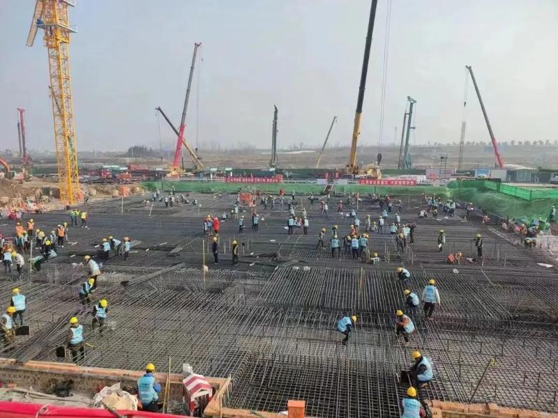 当日,合肥新桥机场T2航站楼工程第一块地下室底板混凝土开始浇筑,中央指廊钢结构立柱首次吊装。验槽工作、防水施工、底板钢筋绑扎施工有序推进,1000余名工人奋战在施工现场。